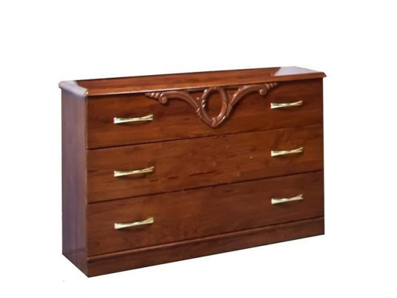 Комод Империя - современный и недорогой комод от производителя Світ Меблів. Он является частью модульной спальни Империя и производится в общем цвете спальни. Комод состоит из 3 вместительных ящиков с двойными золотистыми ручками и декоративной лепкой. Производится этот комод в 2 цветах на выбор: орех лак и роза лак. Благодаря такой цветовой гамме Вы сможете установить комод Империя вместе с зеркалом в спальне как с темным, так и со светлым фоном. Материал корпуса и фасада: ДСП и МДФ. Если Вы хотите купить комод Империя, звоните в интернет-магазин Престиж мебель.