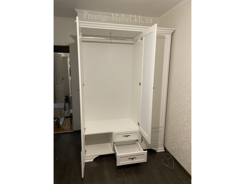 Модульная система Кентуки — современная мебель для дома в классическом стиле фабрики Black Red White Украины. Эта коллекция располагает к себе, излучая особую легкость, естественность и простоту. Она отлично подойдет любителям уютных и теплых комнат. Белый с серебристой патиной — это универсальный оттенок, который подойдет к любому интерьеру, а еще визуально расширит пространство помещения. Серебристая патина, нанесенная на все элементы системы, придает мебели богатого вида и изысканности.