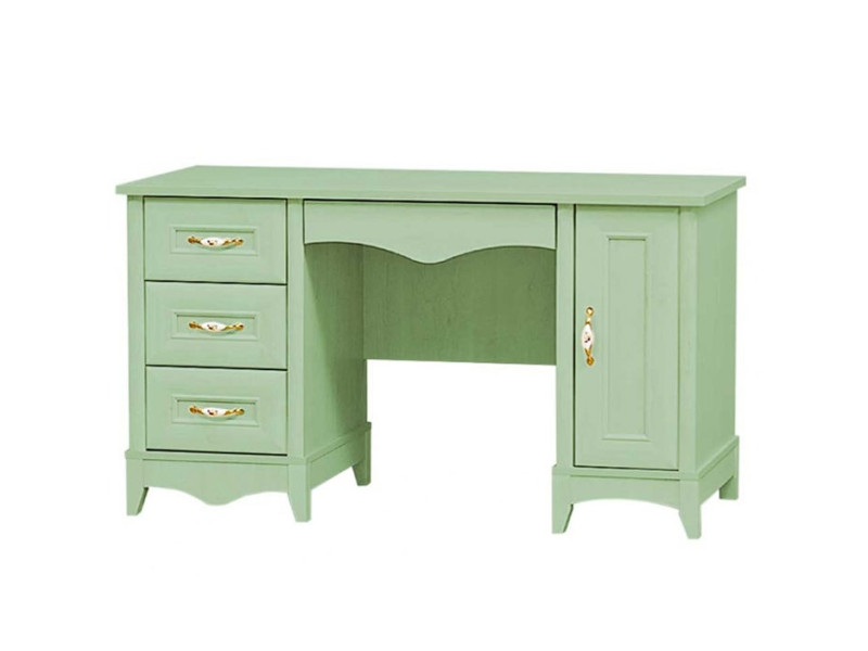 Стол письменный Селина от производителя мебели Світ Меблів - современный стол для работы от известной украинской мебельной фабрики. Он имеет просторную столешницу, шкафчик с полками, 3 ящика для документов. Стол относится к системе Селина, элементы которой с успехом Вы сможете расположить как в детской комнате, так и в других. Может использоваться в тандеме с угловым столом Селина или надставкой Селина. Этот письменный стол производится в 2 цветах: клен и ольха зеленая, благодаря которым может быть установлен в помещении с различным по цвету интерьером. Цветовая гамма изделия исключает сочетание изделия с элементами других систем, стол отлично сочетается только с другими модульными элементами системы Селина. Вместе с комодами, пеналами, тумбами стол письменный Селина создаст в обстановке помещения современный стильный вид и приятную атмосферу.