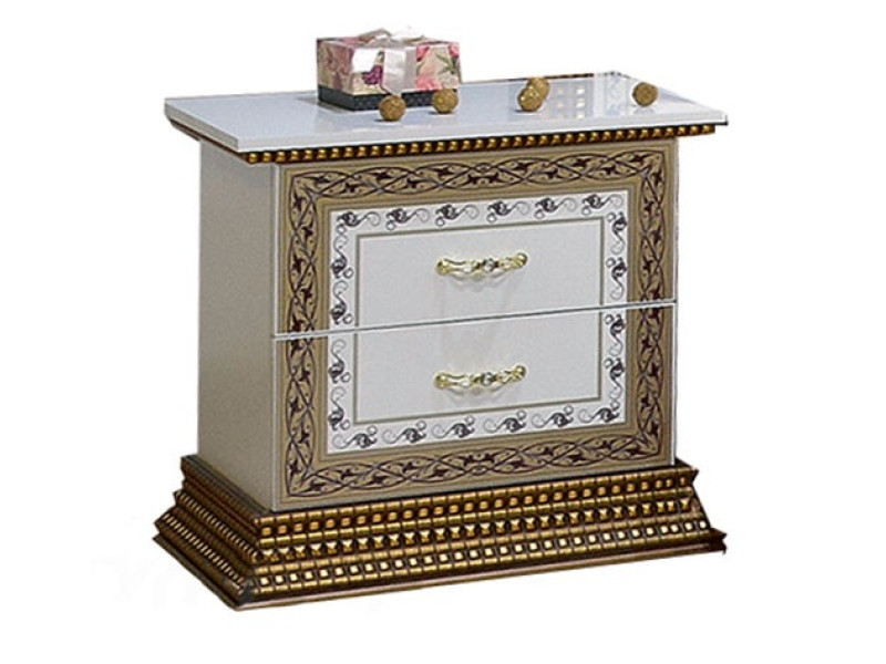 Тумбочка София Люкс от производителя Світ Меблів -необычная и стильная прикроватная тумбочка украинского производства. Она является частью модульной спальни София Люкс, которая изготовляется в белом или черном цвете. Состоит этот элемент обстановки из 2 небольших ящиков на роликовой основе, которые выдвигаются легко и практически бесшумно. Орнамент на фасаде тумбы имеет золотистый цвет и особенно элегантно выделяется на черном фоне. Тумба София Люкс гармонично будет смотреться только с остальными элементами модульной спальни София Люкс. Производится она из качественной ДСП с фасадом с худ.печатью. Если Вы желаете купить тумбу София Люкс, обращайтесь в интернет-магазин Престиж мебель.