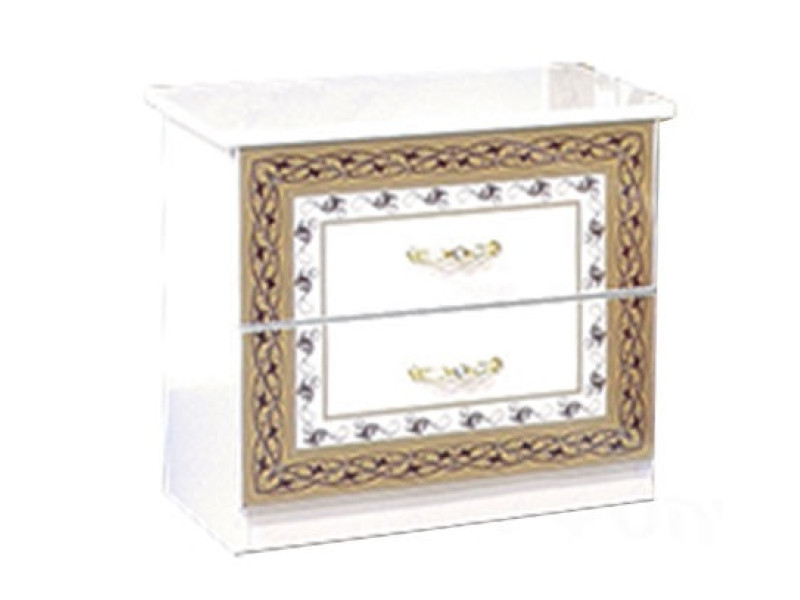 Тумбочка София от производителя Світ Меблів -необычная и стильная прикроватная тумбочка украинского производства. Она является частью модульной спальни София, которая изготовляется в белом или черном цвете. Состоит этот элемент обстановки из 2 небольших ящиков на роликовой основе, которые выдвигаются легко и практически бесшумно. Орнамент на фасаде тумбы имеет золотистый цвет и особенно элегантно выделяется на черном фоне. Тумба София гармонично будет смотреться только с остальными элементами модульной спальни София. Производится она из качественной ДСП с фасадом с худ.печатью. Если Вы желаете купить тумбу София, обращайтесь в интернет-магазин Престиж мебель.